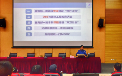 报告会上,向定汉教授首先介绍了教育部一流本科专业建设“双万计划”,然后结合自身经验,详细介绍了国际工程教育认证的基本工作方式、认证标准,一流课程和MOOC的建设方法。向定汉认为本科工程教育应聚焦解决复杂工程问题的能力培养;一流课程的建设要体现“两性一度”,特别是要突出时代性。