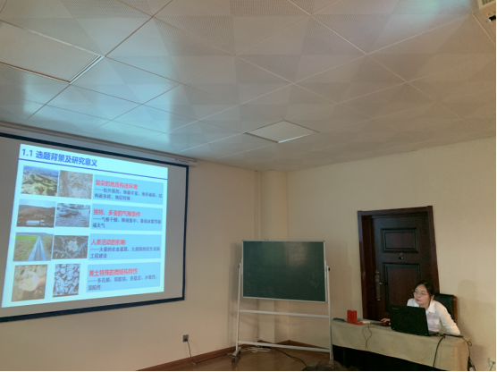 南静静博士首先介绍了课题的研究背景和工程意义。她指出黄土高原是中国“一带一路”的核心区、西部开发的关键区、精准扶贫的重点区、重大工程的战略区以及人地协调的中心区,黄土高原对我国社会、经济、人文及生态文明建设至关重要。复杂的地质构造,独特、多变的气候环境,使该地区生态环境极其脆弱,水土流失严重,黄土环境地质灾害频发。近年来,随着各种国家和地区政策的全面推进,平山造城等重大工程建设应运而生,带来了新的黄土灾害隐患,威胁着黄土地区生态地质环境和人居安全。然而,究其本质原因在于黄土特殊的微结构特性。黄土宏观力学行为受其微结构的显著影响,而其微观结构则随外界环境变化而不断演变。基于微观结构演变与宏观力学特性响应的多尺度研究是深层次认识和解决黄土工程地质问题及其灾变效应的重要基础和关键。报告中南博士系统对比分析了湿载作用下延安新区原状和重塑马兰黄土宏观剪切特性及其微结构演变规律,解释了初始结构性对黄土剪切特性的影响,建立了宏观力学特性与微结构演变之间的相关关系,确定了不同微结构要素对剪切变形破坏的响应规律,揭示了湿载作用下黄土宏观剪切变形破坏的微结构效应和潜在致灾特性,为黄土高原地区工程建设和防灾减灾提供理论依据。