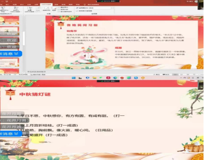 此次活动主持人张逸凡同学们介绍了中秋节的背景,起源,同学们也纷纷介绍家乡各地的民间习俗,大家一同玩猜灯谜的游戏,朗诵诗词,让同学们能更好的了解、感受到中华民族传统文化的博大精深。同学们还纷纷展示手抄报,视频等庆祝双节。