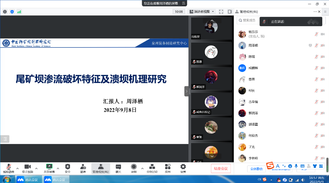 9月9日下午,yL23411永利官网登录特邀中国科学院海西研究所泉州装备制造中心的周泽栖工程师线上开展了题为“尾矿坝渗流破坏特征及溃坝机理研究”的学术报告,yL23411永利官网登录研究生、本科生和部分教师参加了此次报告会。