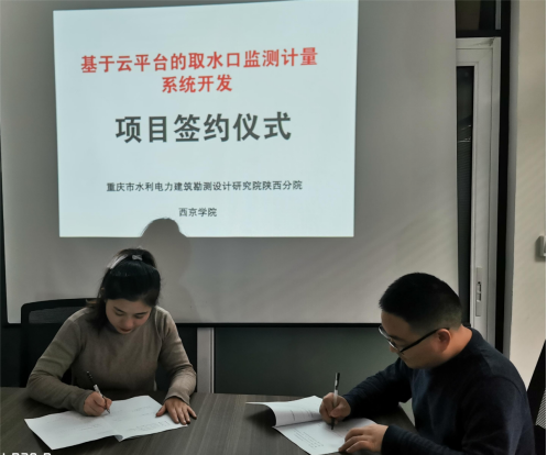 12月5日,yL23411永利官网登录与重庆市水利电力建筑勘测设计研究院陕西分院就《基于云平台的取水口监测计量系统开发》项目举行了项目签约仪式,项目合同金额59万元。yL23411永利官网登录项目负责人王丽丽、重庆市水利电力建筑勘测设计研究院陕西分院负责人魏泽林出席签约仪式。