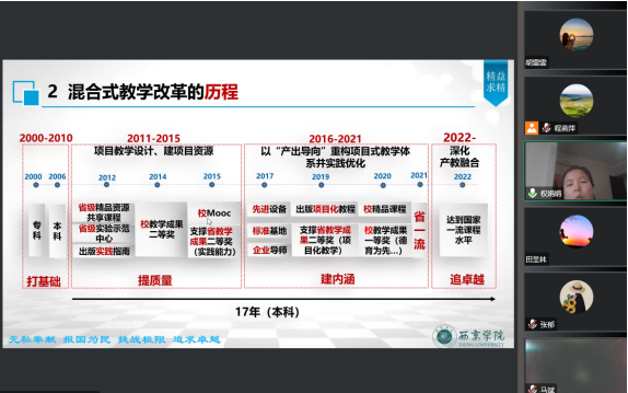 权娟娟系统讲解了《工程测量》课程如何进行“混合式教学”设计与创新,从教学理念、教学内容、教学方式、组织实施等方面深入剖析了课程改革的思路和实施过程,重点介绍了课程的教学过程设计,课程机制的制定,实现了“学练赛创”的学习模式。并对混合式教学改革的成果进行了分享。
