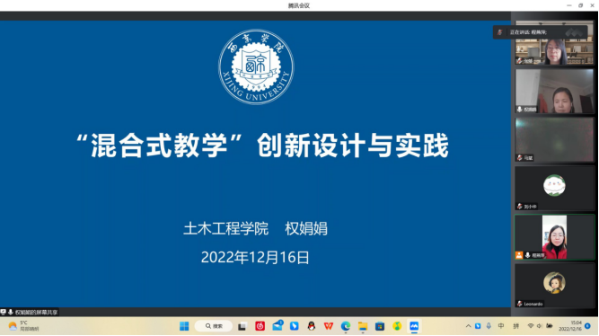 权娟娟首先汇报了混合式教学改革的背景,教学模式的改革迫在眉睫,然后以《工程测量》课程混合式教学改革为例,介绍了课程的改革历程、教学设计与创新、教学实践和改革成果,梳理了教学过程中的问题、难点,从线上线下项目式教学多方面多维度的解决教学问题。