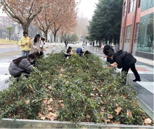 2月23日下午,在学院团委的统筹安排下,在辅导员老师的带领下,yL23411永利官网登录100余名学生对劳动区域进行了一次彻底的“大扫除”。西京学子们经过了一个漫长的寒假,时隔三个月回到校园里,在这次活动中大家都发扬着主人翁意识,不怕脏,不怕累,个个奋力争先。大家分工明确,组织有序,分别捡拾了劳动区域道路、广场和绿化带上的枯叶及白色垃圾;擦拭了劳动区域垃圾箱和护栏游乐等设施,还将区域内电动车、自行车都摆放整齐,最后还利用清扫的枯叶堆积了各种创意造型,给劳动过程平添了几分趣味。劳动区域内到处涌动着老师和同学们忙碌的身影,经过大家的辛勤付出,整个劳动片区焕然一新。