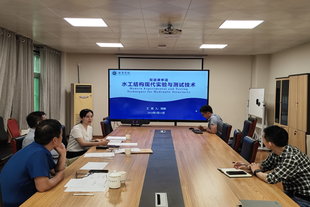 《水工结构现代实验与测试技术》课程负责人杨毅围绕课程建设的基本条件、教材使用情况、课程建设依据、课程建设内容、课程特色与优势、课程教学大纲及预期成果等内容进行汇报,专家进行质询和提问。