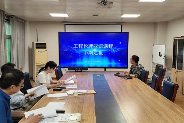 《工程伦理》课程负责人郭培玺老师展示了其建设成效。该课程自开展以来,建设效果显著,得到了评审专家们的良好评价,并为其后续发展提出了宝贵的改进建议。