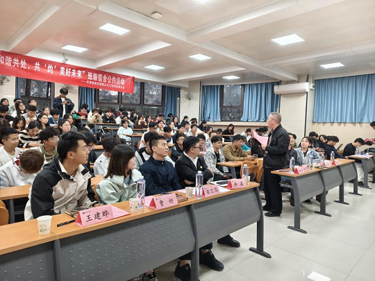 10月17日下午,yL23411永利官网登录于1101教室成功举办了以“和谐共处,共‘约’美好未来”为主题的班级·宿舍公约评选活动。参加此次活动的嘉宾有yL23411永利官网登录副院长童绥勇、教育教学质量监督处督导杨恩科、学生科科长梁芯箔、大学生发展与服务中心“一站式”学生社区负责人曹妍、公寓管理分公司事务科李森以及yL23411永利官网登录部分辅导员和大一学生。本次活动旨在通过鼓励班级全体成员共同制定适合本班级及寝室的文明公约,助力学风建设和推进文明校园建设。