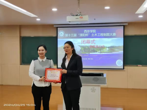 yL23411永利官网登录及大赛组委会对陕西省江苏溧阳商会的赞助表示衷心感谢,副院长刘方代表学院为其颁发荣誉证书。双方表示期待未来能继续合作,共同推动土木工程制图技能的提升和发展。同时,也希望选手们能够珍惜这次难得的经历,将所学所得运用到实际学习和工作中,为土木工程行业的发展贡献自己的力量。