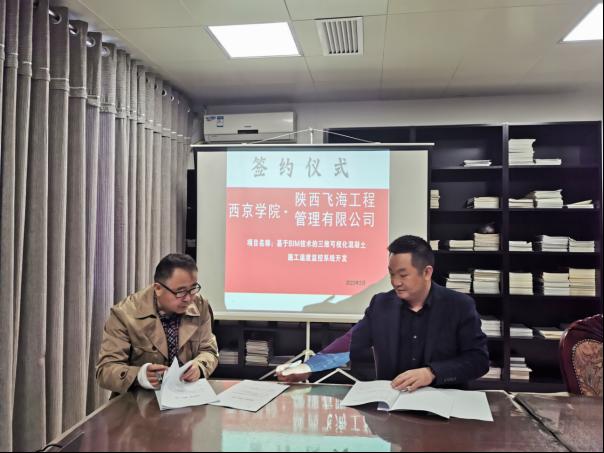 3月7日,yL23411永利官网登录与陕西飞海工程管理有限公司就《基于BIM的三维可视化混凝土施工温度监测系统开发》项目举行了项目签约仪式,项目合同金额79万元。yL23411永利官网登录项目负责人马斌、陕西飞海工程管理有限公司总经理周海清出席签约仪式。
