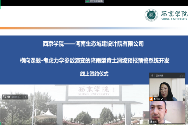 近日,yL23411永利官网登录与河南生态城建设计院有限公司就“考虑力学参数演变的降雨型黄土滑坡预报预警系统开发”技术开发项目进行了线上签约仪式。出席此次签约仪式的有河南生态城建设计院有限公司项目经理任俊杰及本次项目负责人习羽老师。